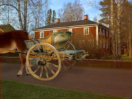 Jouttikeisi Jouttikeisi on Pohjanmaalla vanhimpia valmistettuja ajoneuvoja. Silmiinpistävää siinä on kauniisti muotoiltu istuin, kuin mahapiironki "puujouttien" päällä. Runsaasti koristeveistettyjä yksityiskohtia kuten istuimen, särmin ja matka-arkun teline. Siihen aikaan tavattiin käyttää kärryissä vielä puuakselia, mutta jouttikeisissä se oli terästä. Könnin mestarien itselleen ja suvulleen käyttämä väritys esiintyy keltaokrana mustilla raidoilla ja ornamenteilla koristeltuna. Samuli Paulaharju kuvailee jouttikeisiä seuraavasti: "Jouttikeisit olivat vanhaa komeaa koukeromallia, mutta niiden istuin keikkui vahvoilla puujouttiilla. Mestari oli tehnyt puutyön, mestariseppä raudoittanut ja maalari vetänyt värit, samat mielivärit, joita vanhat ihastelivat arkuissaan, kello- ja karmikaapeissaan. Istuimen selkämystän ja poskien kellanruskealla pohjalla oli koreita kukkia ja ässänvääriä, samoin särmissä, reunapuolet, aisat ja takalaudat oli maalattu tummiksi. Taikka oli koko ajopeli sivelty tummanveheriäiseksi sekä vedelty vaaleita raitoja reunoihin, särmi ja istuimenselkä koukeroitu oikein korjiksi. Kaleeseilla ajelivat papit ja muut isoot herrat, palkehilla ja jouttikeiseillä keikuttelivat rintakylien isoot isännät." |