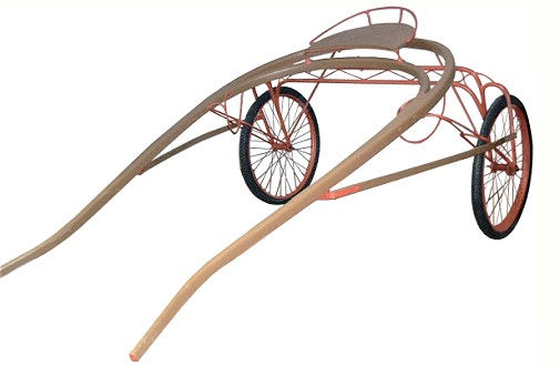 Hillin Jussin Nopankylästä valmistama kilpakärry jossa on kaksi poikittaista välipuuta. |